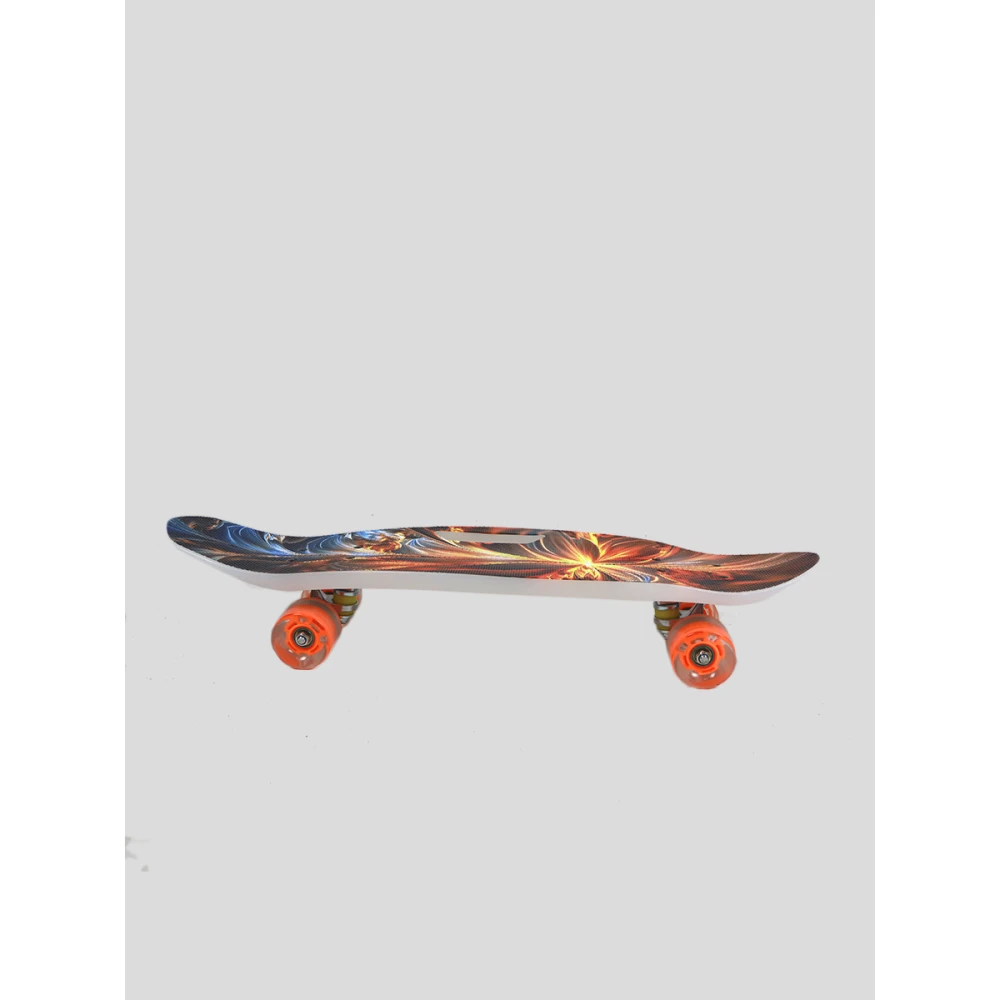 Модель изготовлена с учетом пожеланий пользователей. Имеет небольшой вес, компактные эргономичные характеристики. Может транспортироваться ребенком самостоятельно, не требует выделения отдельно места для хранения. Колесная часть изготовлена из мало стираемого полиуретана, обеспечивает мягкость хода как на асфальтовой, так и неровной местности. Дека – брендовая, нескользящая, выполнена в космических цветовых оттенках. Первое ознакомление со скейтбордом вызывает восторг и желание разогнаться до максимальных скоростей, сделать трюки и маневрировать на крутых поворотах.