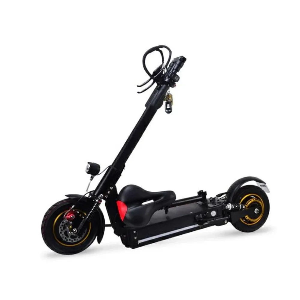 Широкая платформа для ног и удобное сидение правильной формы позволит райдеру комфортно чувствовать себя в длительной поездке. Полноприводный электродвигатель мощностью 2000 Вт обеспечивает разгон до 60 км/час. При характеристиках АКБ (емкость 28 Ач) пользователь может пройти до 80 км пути без подзарядки. Классическая форма руля и алюминиевая рама весом 26 кг обеспечивают маневренность и плавность движения.