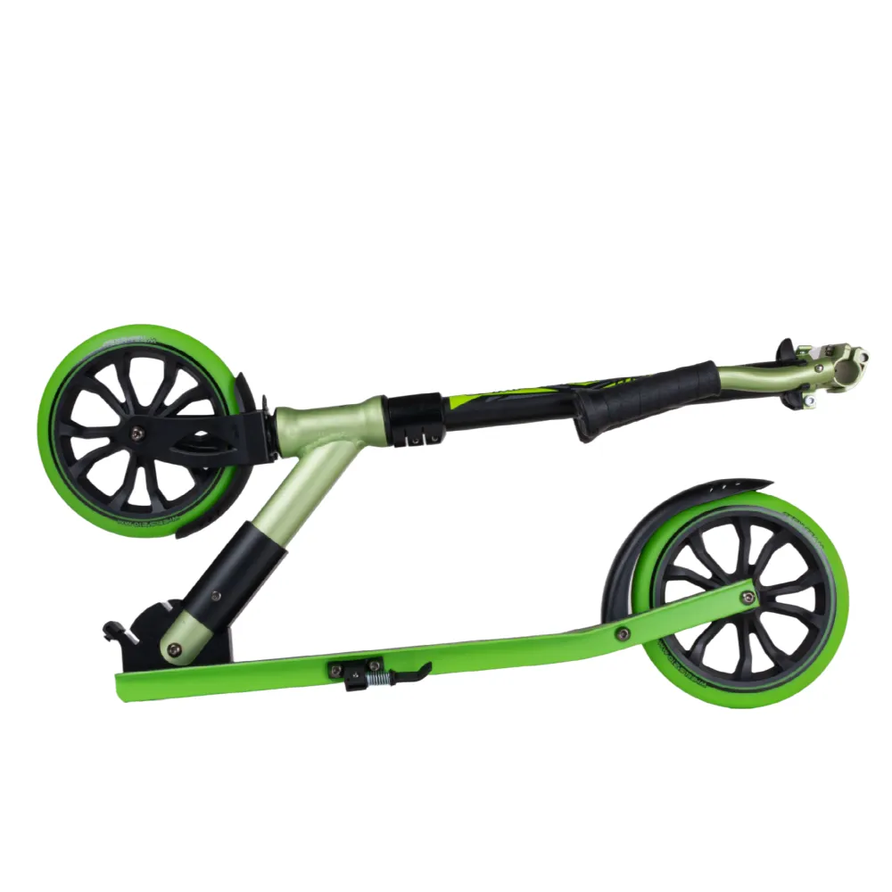 Модель оснащена широким (47 см) регулируемым рулем (760-910-965-1115 мм). Имеет спецзажим, исключающий люфт и посторонние шумы. Прочная и надежная при эксплуатации в жестких условиях. Колесная часть – 210 мм, полиуретановая, мало стираемая. Клиренс составляет 55 мм, гарантирует отсутствие дискомфорта при преодолении проблемных участков. Дека – широкая, достаточная для размещения двух стоп. Нескользящая шкурка увеличивает параметры безопасности. Техника предназначена для активного время провождения на свежем воздухе с друзьями и родителями. Безопасная и простая в эксплуатации. При необходимости может трансформироваться в компактные эргономичные размеры. Простота транспортировки обеспечена наличием специального ремешка. Надеемся, вам понравился самокат. Предлагаем приступить к оформлению заказа.
